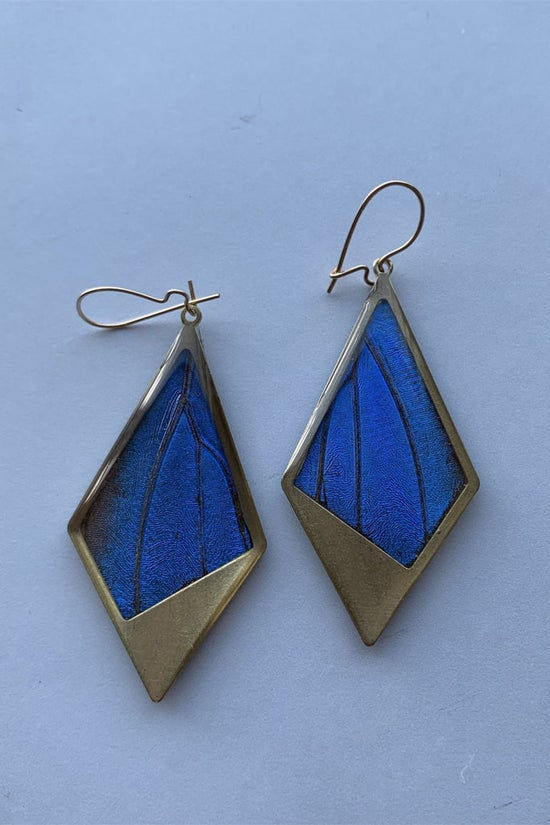 Blue Morpho Brass Diamond Butterfly Pendant Earrings