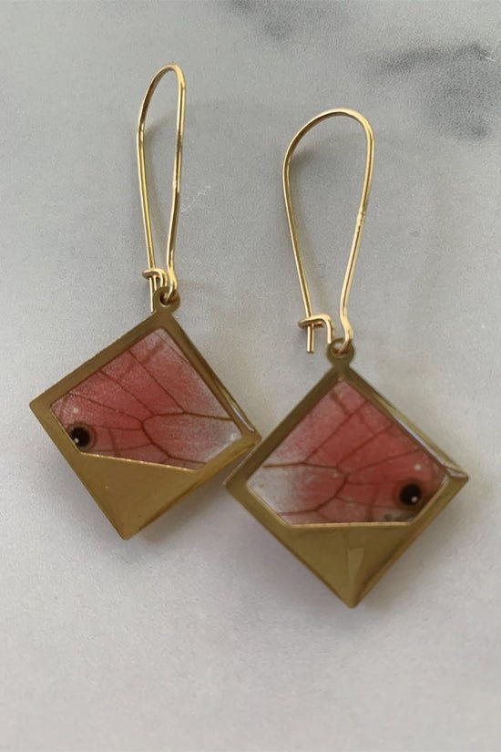 Merolina Butterfly Bottom Wing Brass Square Earrings