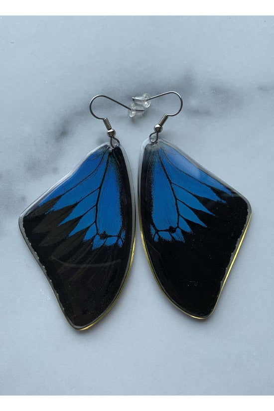 Papilio Ulysses Butterfly Wing Earrings - Bottom Wing
