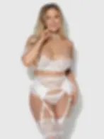 Bridal Satin & Lace Strapless Bra, Garter Belt, & Tanga Set